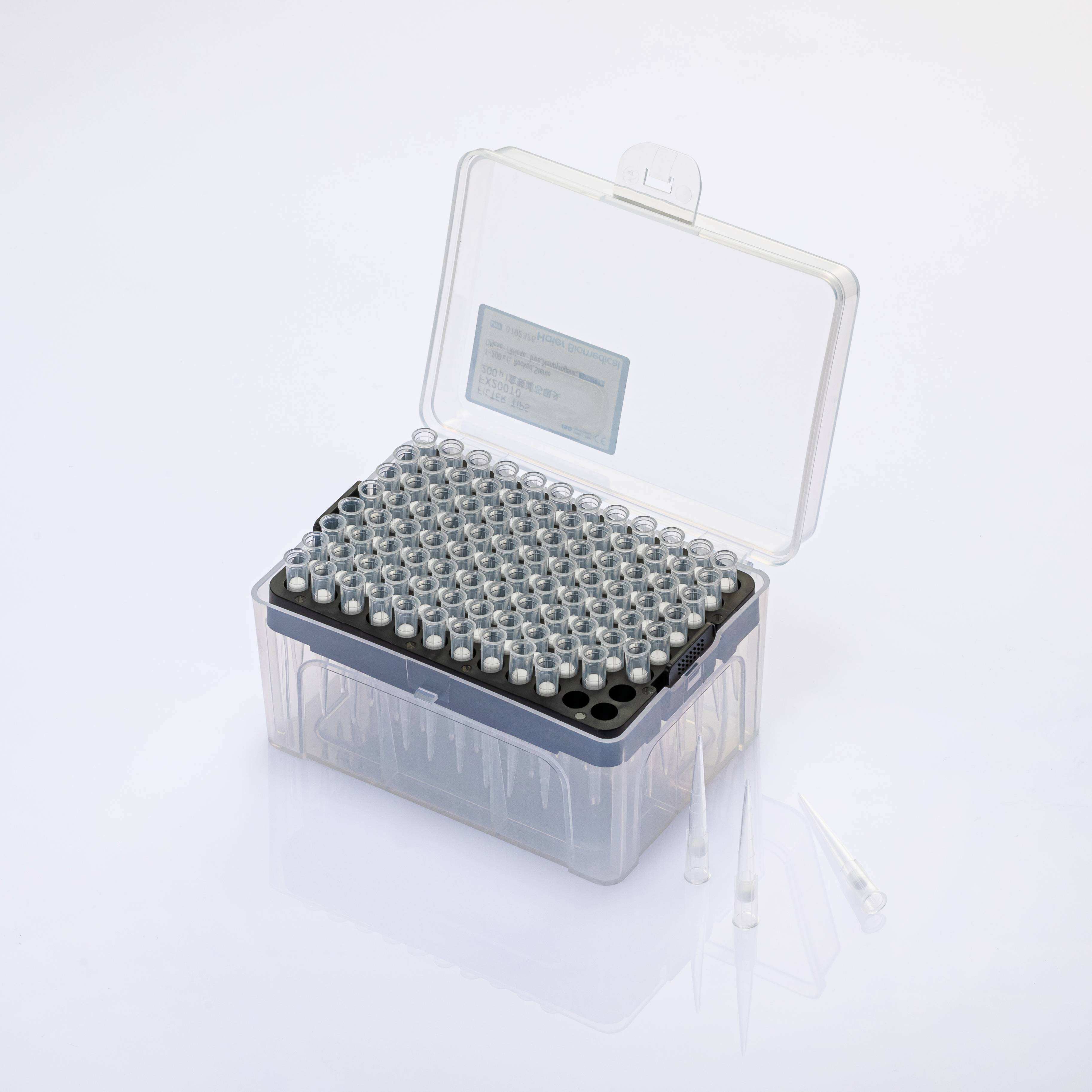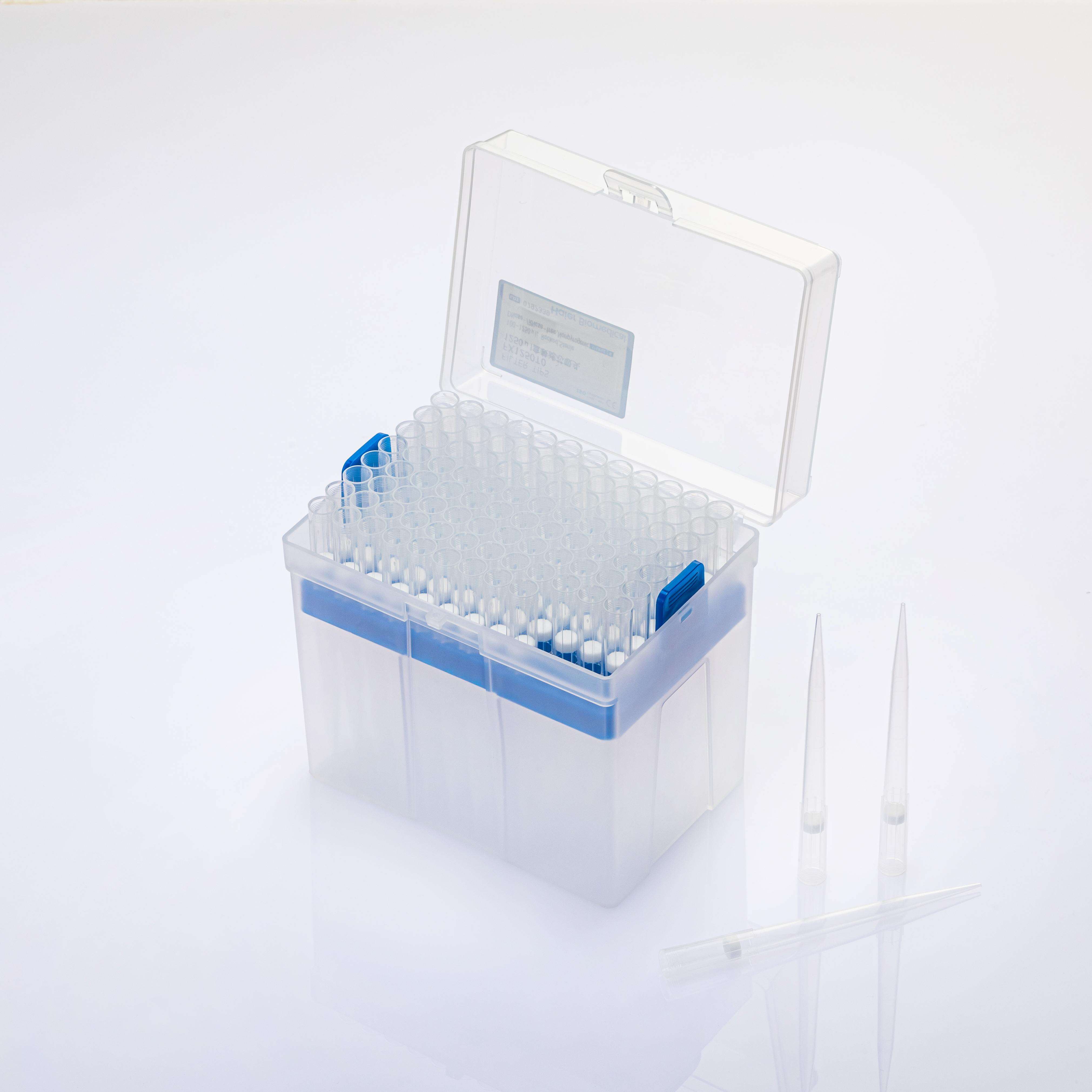 Majëza me Retension të Ulët, 300μL, me gjatësi të zgjatur, të shkallëzuara, të qarta, të filtruara, të paketuara në kuti, sterile; |